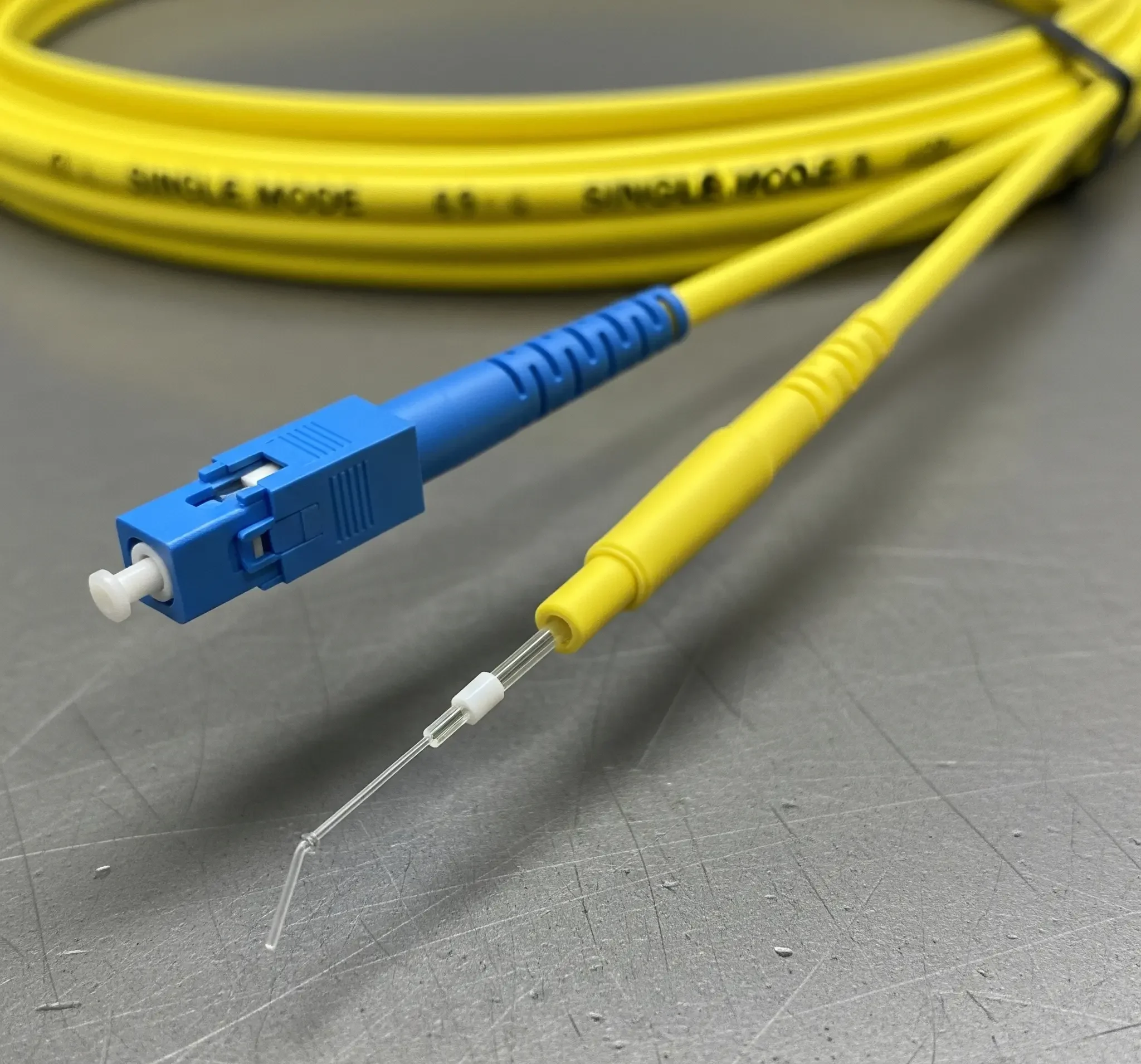 یک هسته مرکزی دارد که نور از آن عبور میکند، اطراف آن یک لایه کلاهک وجود دارد که نور را درون هسته نگه میدارد و روی همه اینها یک پوشش محافظ پلاستیکی قرار دارد که از فیبر در برابر خراش و خم شدن محافظت میکند. تفاوت اصلی اینجاست که فقط یک سر آن کانکتور دارد و سر دیگر آن برای جوشکاری آماده است. این کار باعث میشود اتصال بسیار محکم و با کمترین تلفات نوری انجام شود. وقتی دو فیبر به این شکل به هم جوش میخورند، تقریباً مثل یک فیبر یکپارچه عمل میکنند و سیگنال نوری با کمترین اختلال عبور میکند.